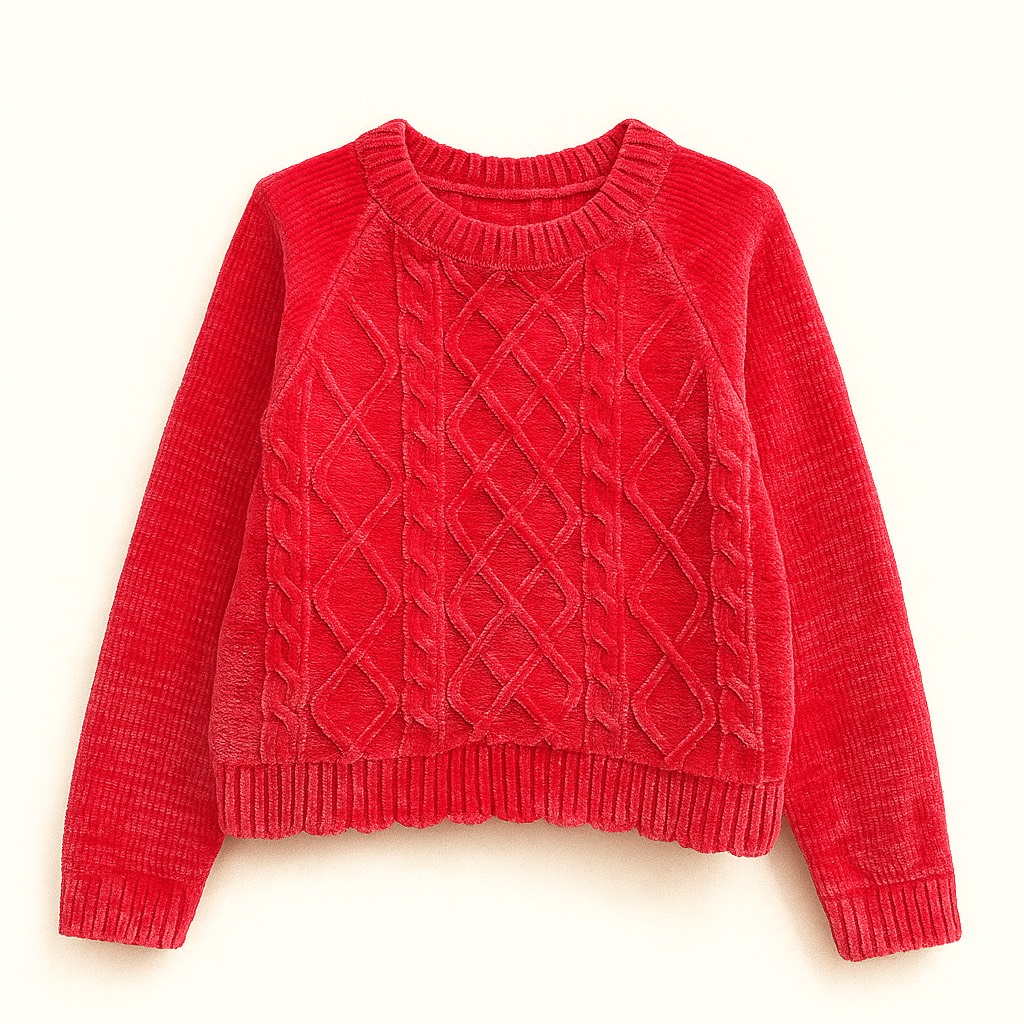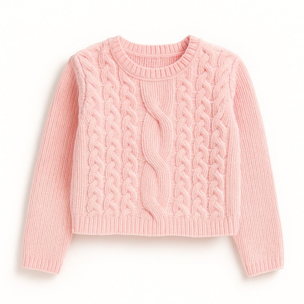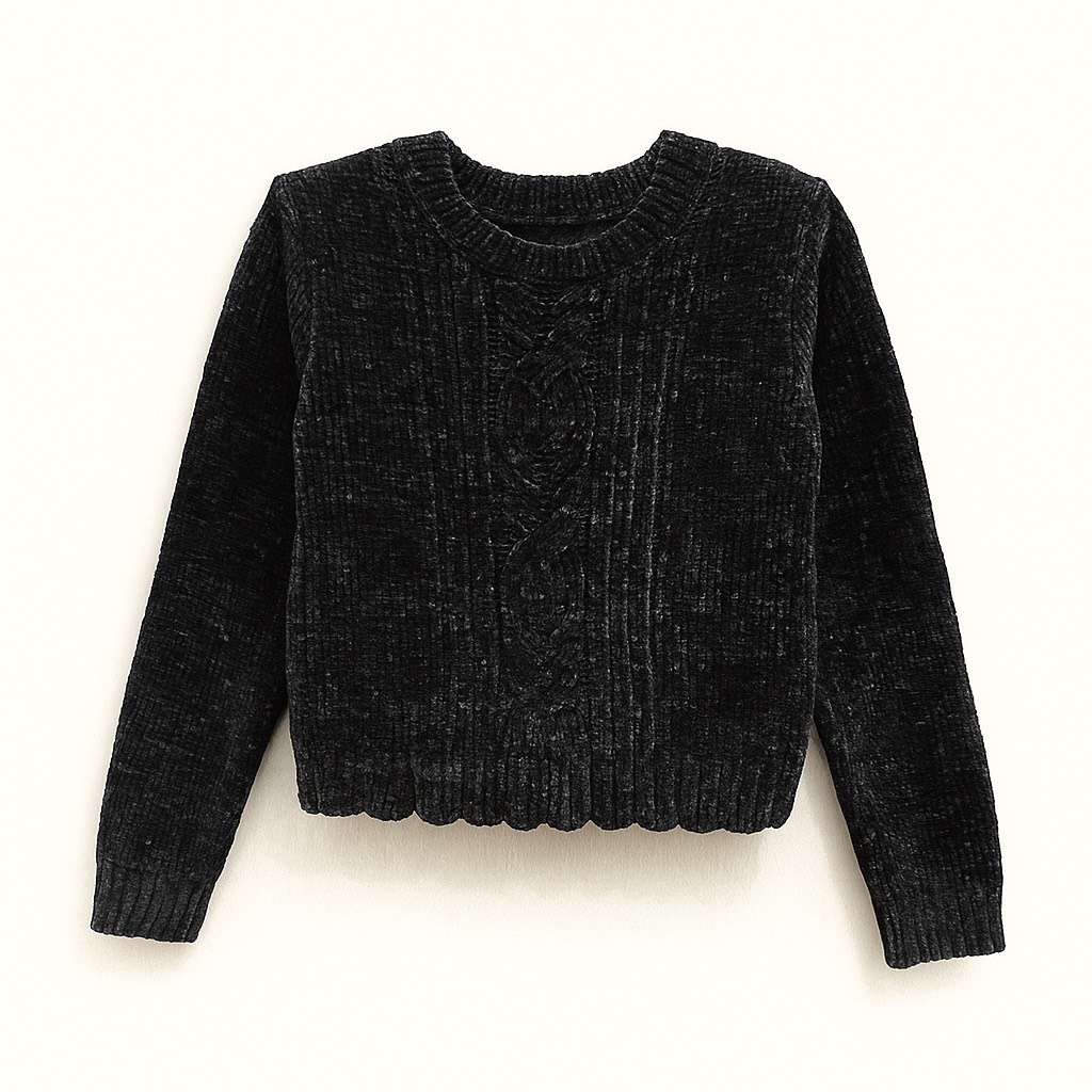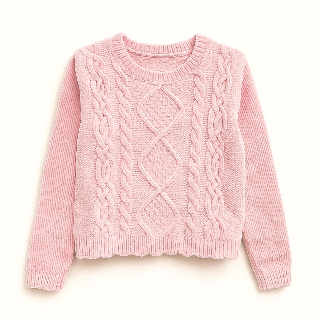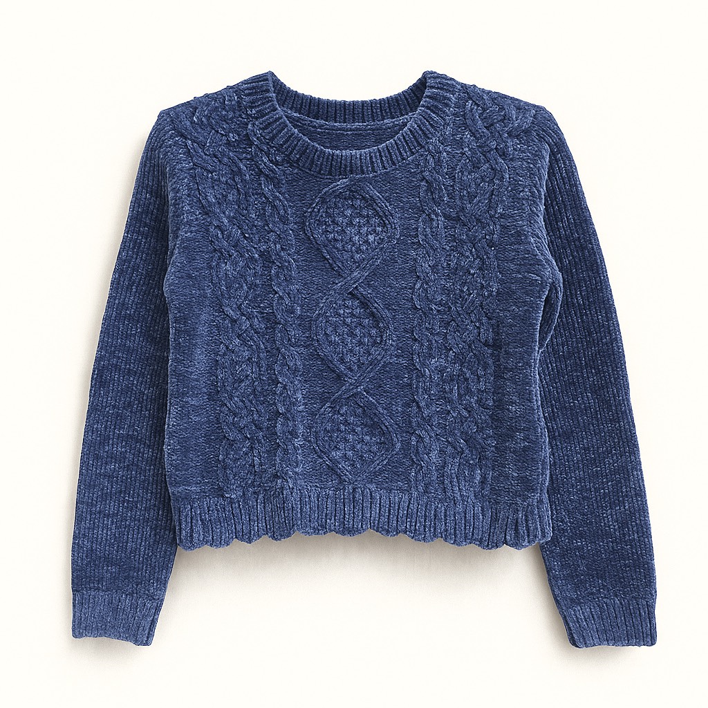 Crop top en maille douce avec motifs torsadés, coupe courte et finitions côtelées pour un style cosy et tendance.