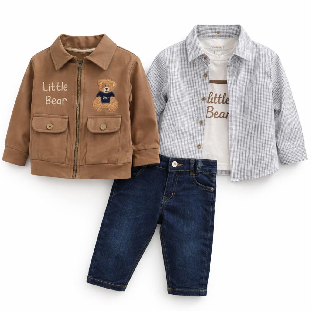À la recherche d’un ensemble bébé garçon tendance en Algérie ? Découvrez ce magnifique ensemble 4 pièces Little Bear, parfait pour un look chic, moderne et confortable.