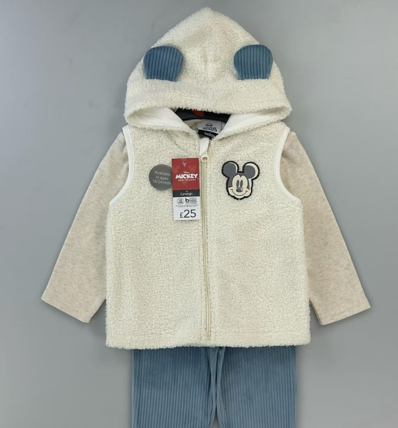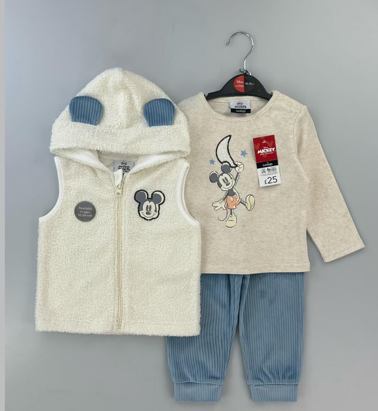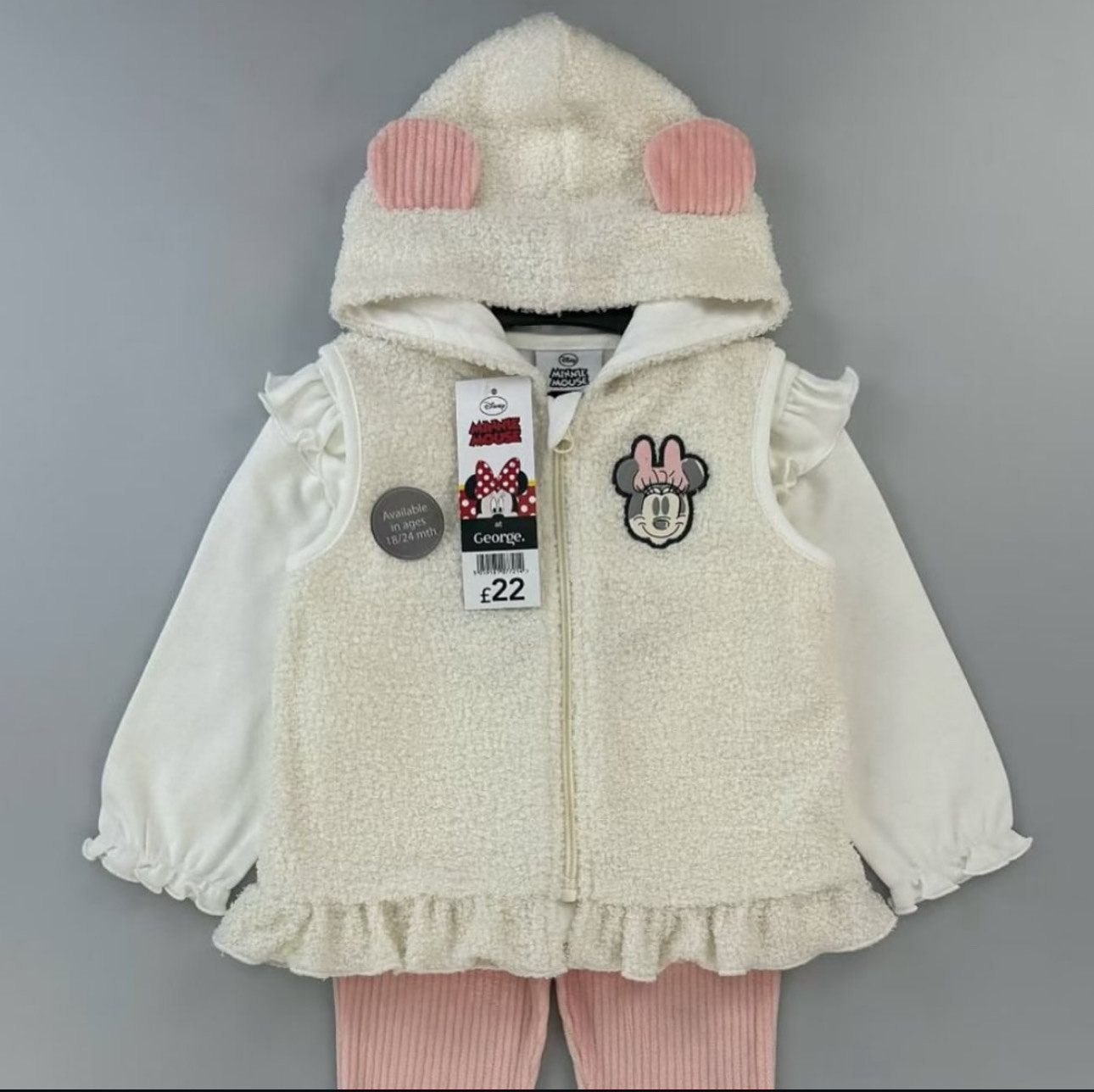 Tenue confortable composée d’un t-shirt à manches longues imprimé Minnie, d’un pantalon en velours côtelé et d’un gilet sans manches à capuche avec petites oreilles pour un look craquant et cosy.