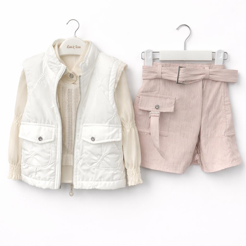Offrez à votre princesse un look irrésistible avec cet ensemble fille 4 pièces ultra tendance 💕 Composé d’une jupe élégante avec ceinture, d’un gilet doudoune sans manche matelassé et d’une blouse raffinée, cet ensemble allie style chic et confort absolu.