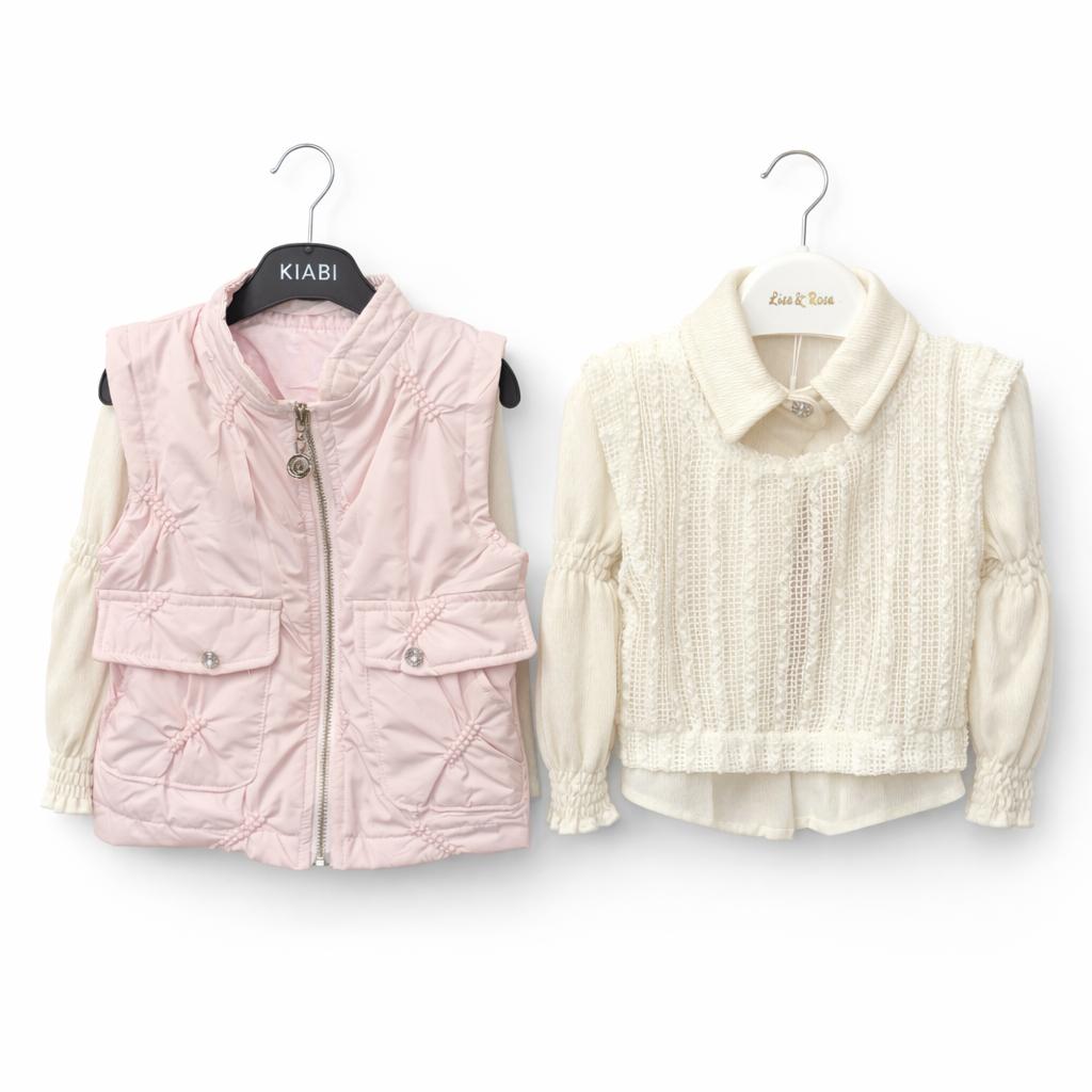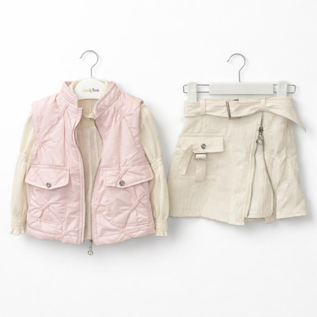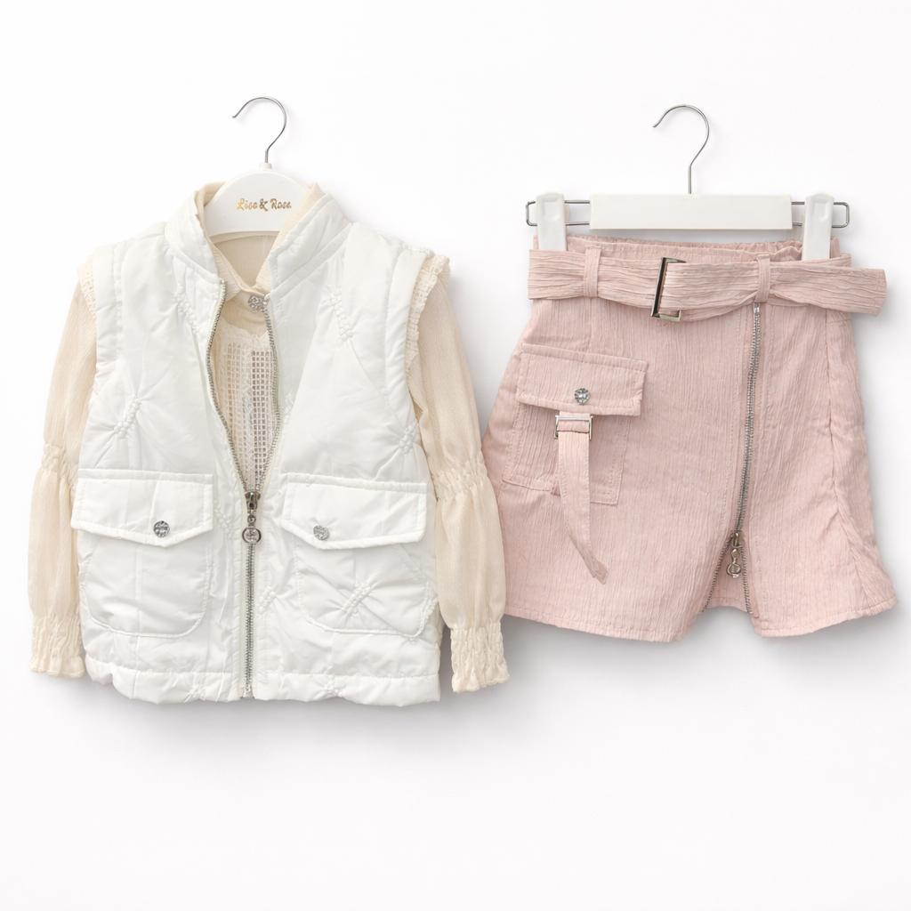 Ensemble Fille Chic 4 Pièces Jupe + Gilet Doudoune Sans Manche + Blouse – Tenue Mode Enfant Tendance