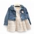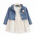 Adorable ensemble composé d’une robe en dentelle délicate et d’une veste en jean ornée de perles fines. Disponible en plusieurs coloris pour les filles de 2 à 5 ans. Parfait pour les sorties, anniversaires et occasions spéciales. Tendance, confortable et élégant.