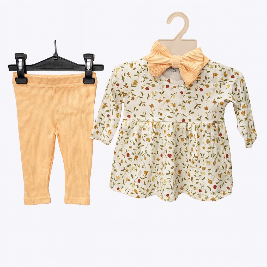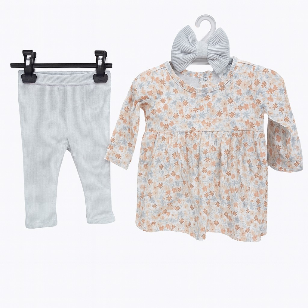 Tenue confortable composée d’une tunique à manches longues imprimée de petites fleurs, d’un legging doux et d’un joli nœud assorti pour un look charmant et élégant au quotidien.