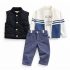 Ensemble garçon 4 pièces : jean, gilet zippé, t-shirt graphique & doudoune sans manche. Look complet chic et confortable, idéal pour toutes occasions