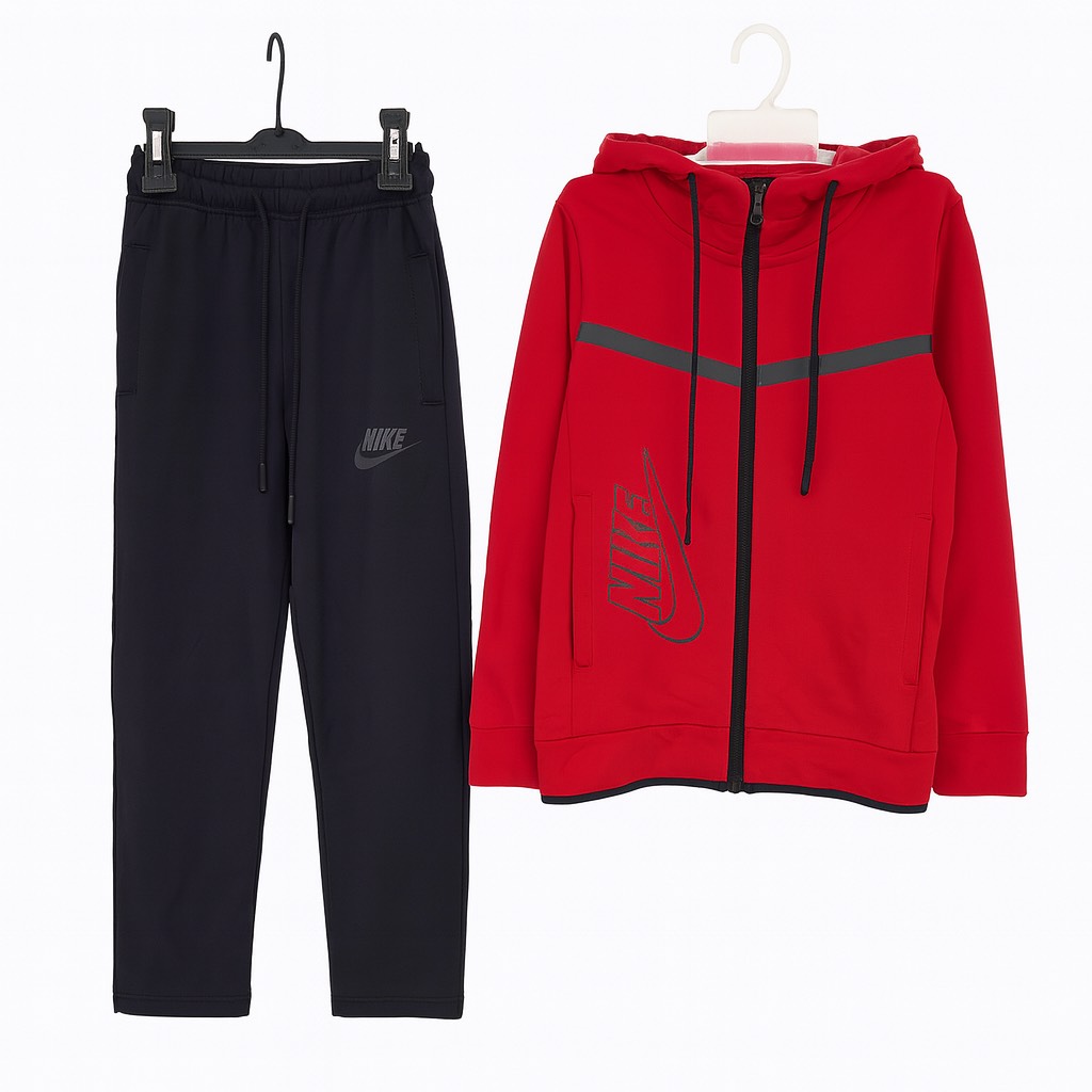 Un ensemble sportif composé d’un sweat à capuche zippé avec logo Nike et d’un pantalon confortable à taille élastique. Parfait pour un look dynamique et décontracté, idéal pour l’école ou les activités quotidiennes.