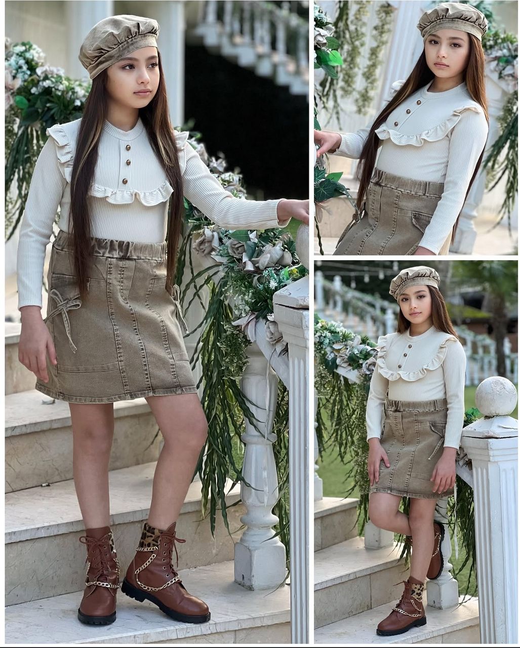 L’ensemble 3 pièces pour fille avec jupe en jean est une tenue décontractée et stylée. Il comprend une jupe en jean classique, idéale pour une allure casual, accompagnée de deux autres pièces assorties, comme un t-shirt ou un haut tendance et une veste légère ou un cardigan. Cet ensemble est parfait pour les journées de printemps ou d’automne, offrant confort et style tout en permettant de créer un look facile à porter au quotidien. Une combinaison pratique et moderne pour une petite fille pleine de style !