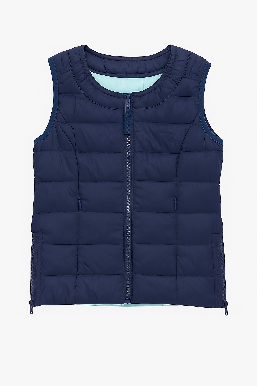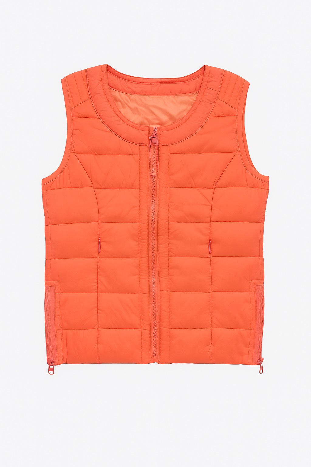 Gilet matelassé léger avec fermeture zippée, coupe sans manches et poches fonctionnelles. Confortable et pratique, idéal pour superposer en demi-saison.