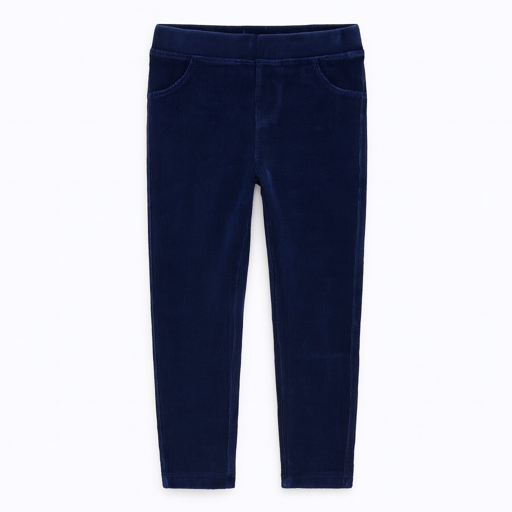 Legging doux et élégant en velours côtelé bleu marine, avec taille élastique pour un confort optimal. Un bas chaud et chic, idéal pour l’hiver et facile à assortir