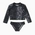 Ensembles de bain deux pièces pour fille, avec haut à manches longues et bas assorti. Disponibles en plusieurs styles : noir sport ou motif léopard. Parfaits pour allier look tendance et protection solaire optimale.