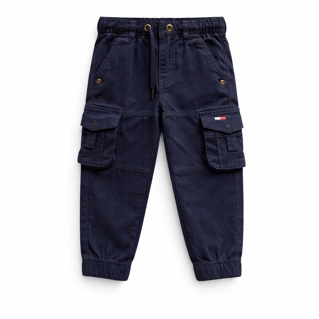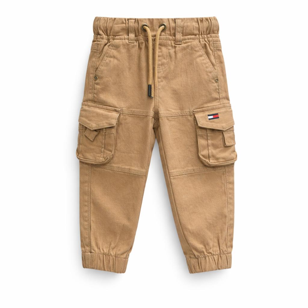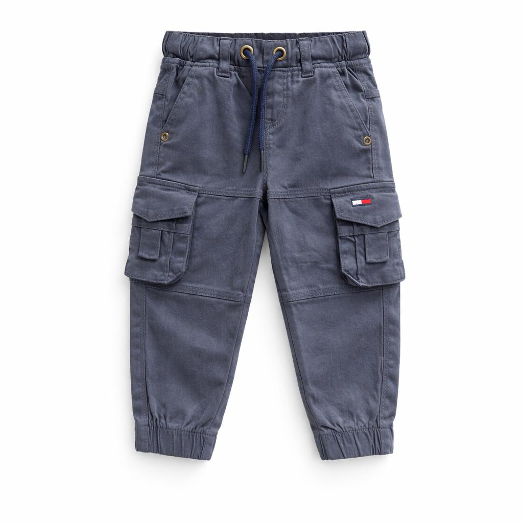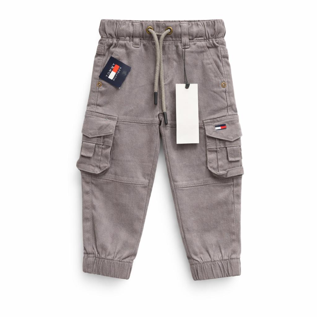Pantalon cargo en coloris gris, style urbain et pratique. Taille élastique avec cordon de serrage, grandes poches sur les côtés et bas resserrés pour un look moderne et confortable au quotidien.