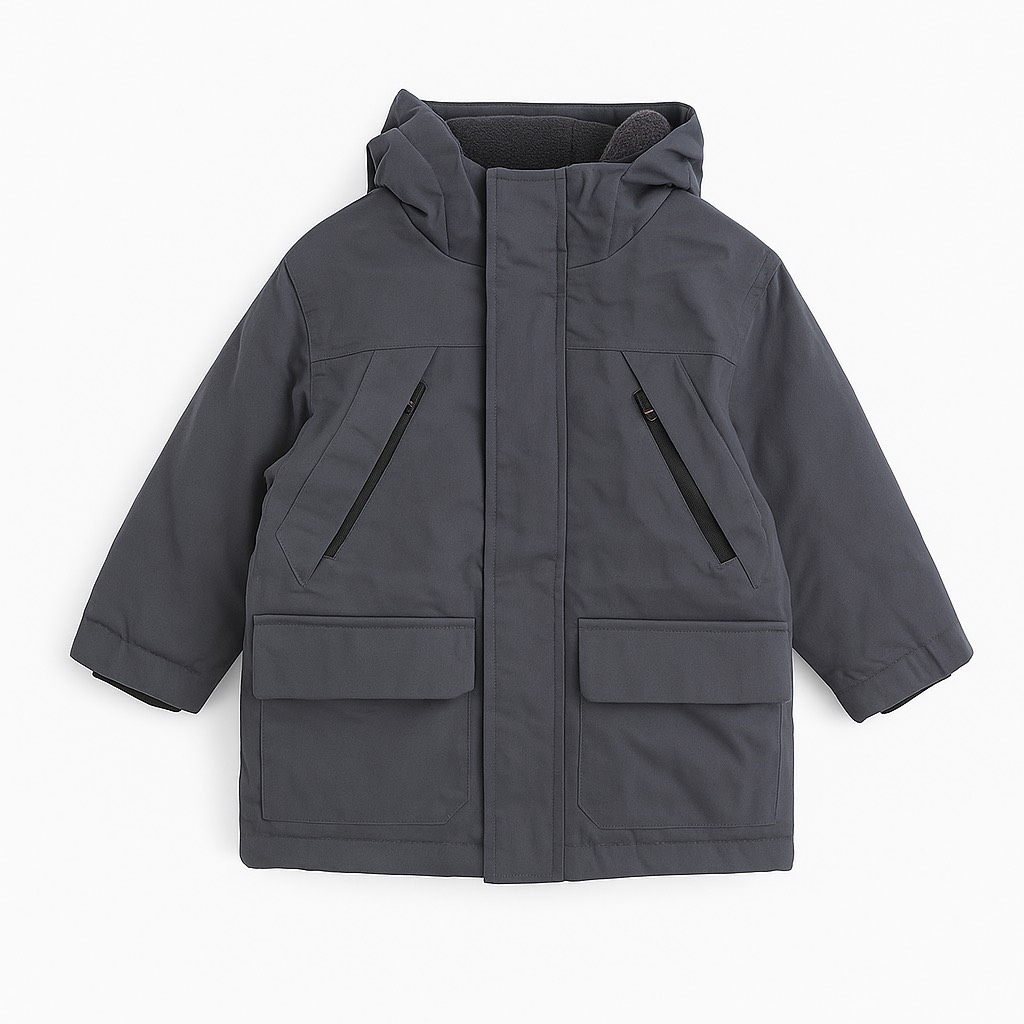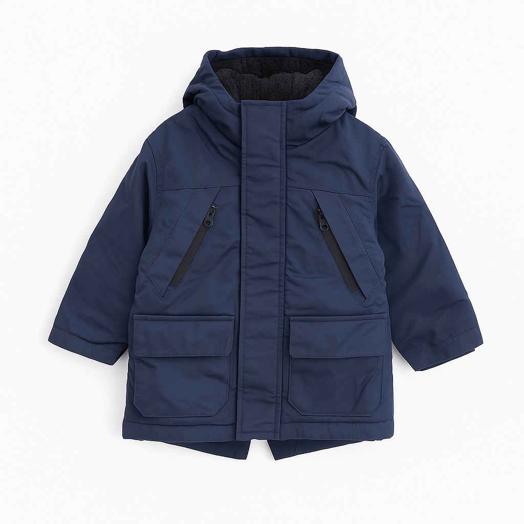 Parka chaude et matelassée avec capuche intégrée, poches à rabat et poches zippées. Fermeture zippée sous patte pour une protection optimale contre le froid. Style pratique et confortable pour l’hiver.