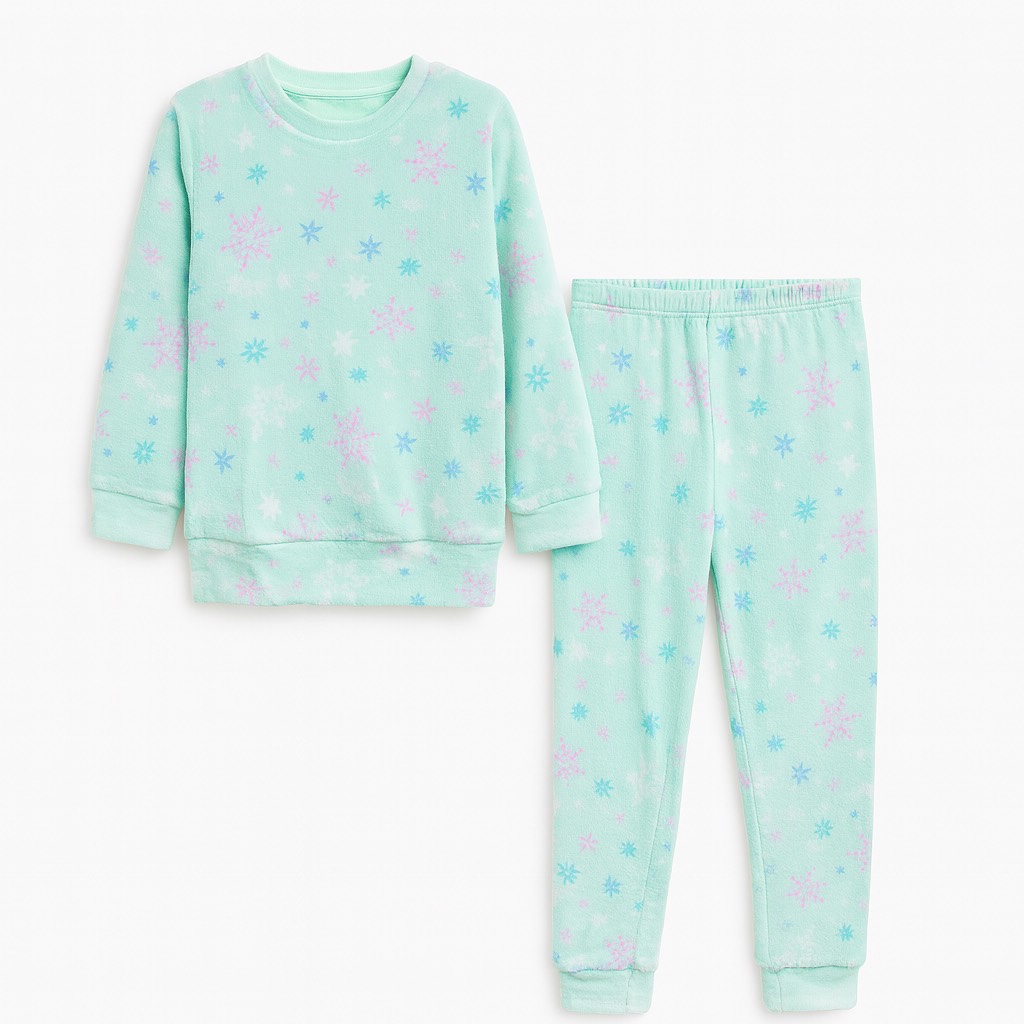 Pyjama deux pièces en matière ultra-douce avec imprimé flocons pastel. Ensemble confortable et chaleureux, idéal pour des nuits cosy tout l’hiver.