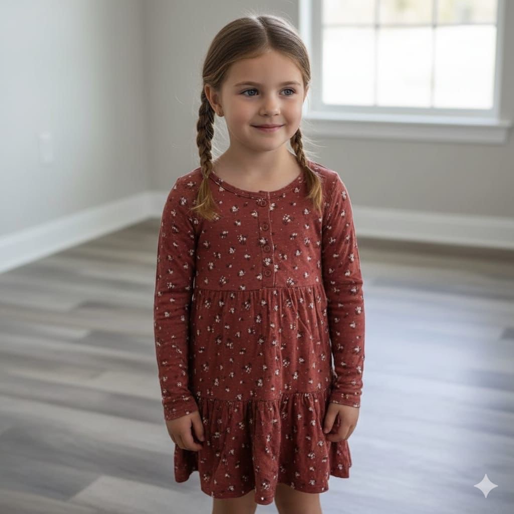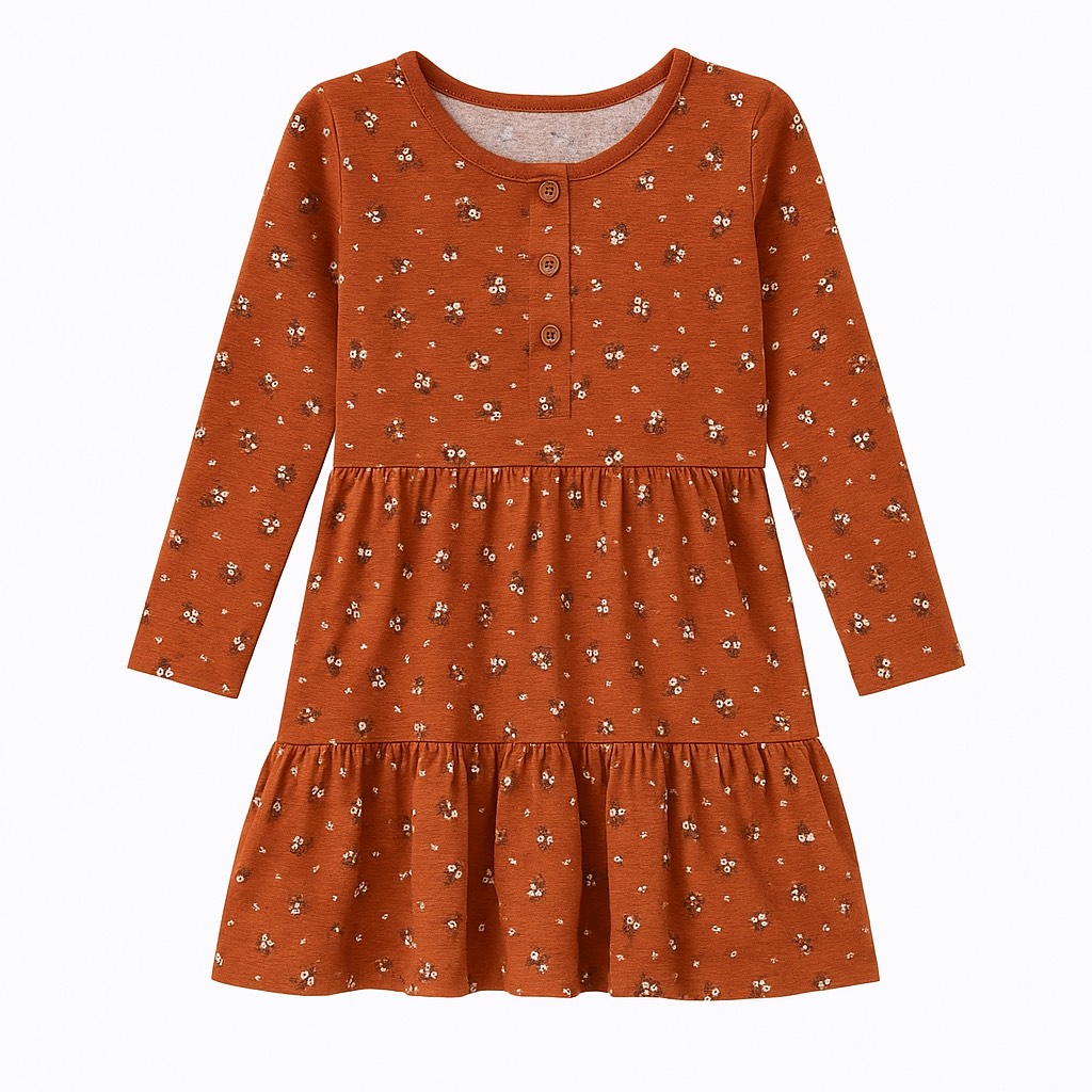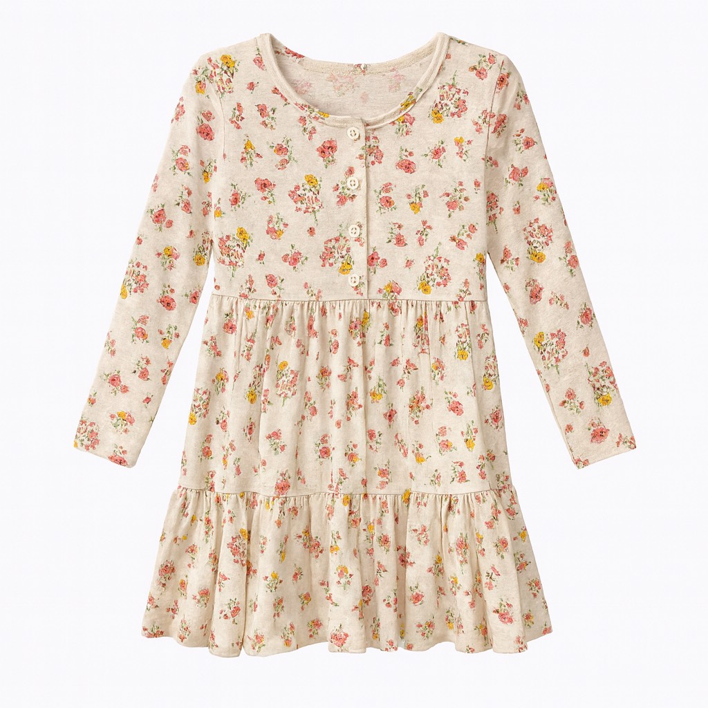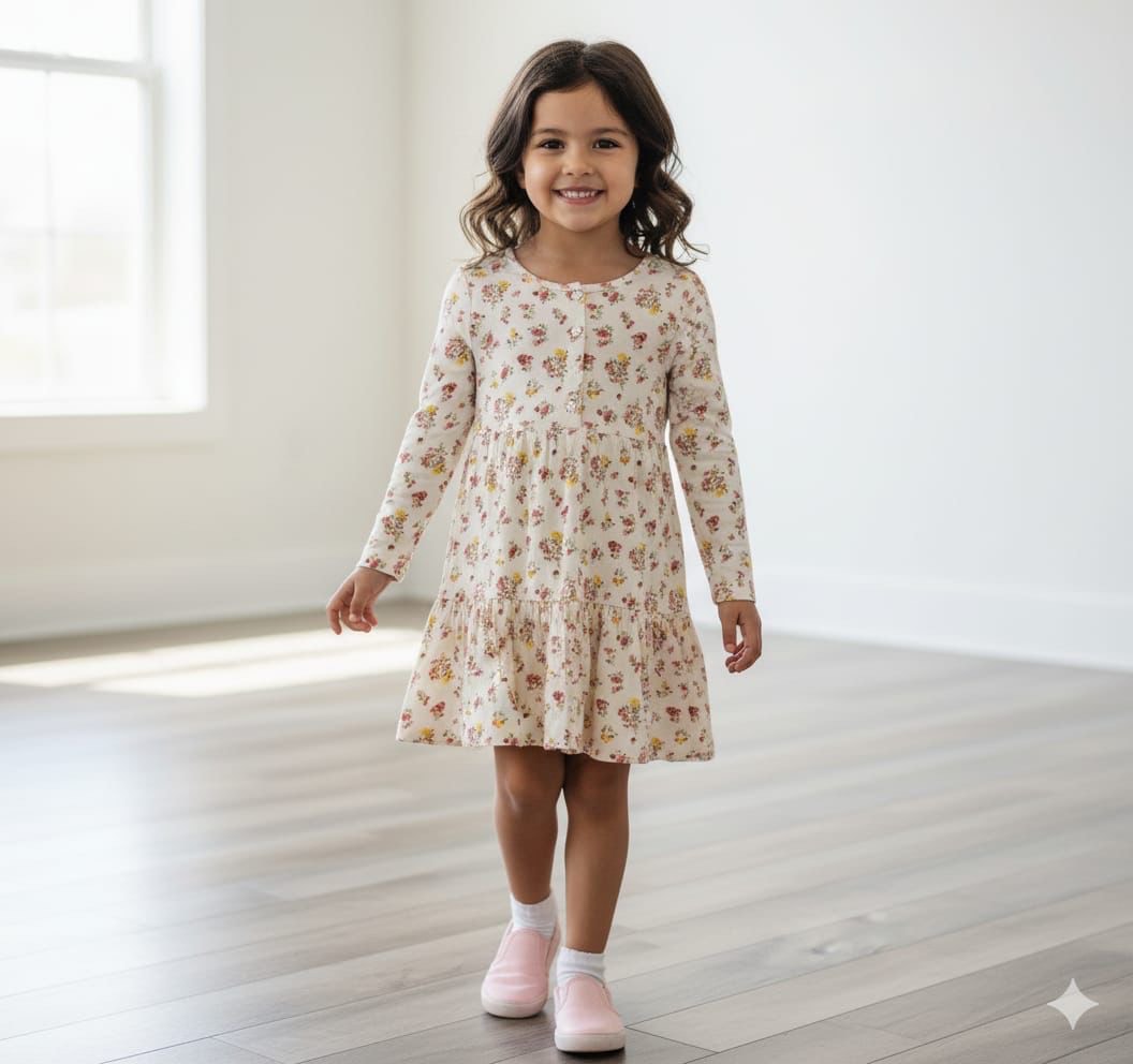 Une robe douce et confortable avec un imprimé fleuri délicat, manches longues et boutons décoratifs sur le devant. Parfaite pour un style élégant au quotidien tout en restant pratique et agréable à porter.