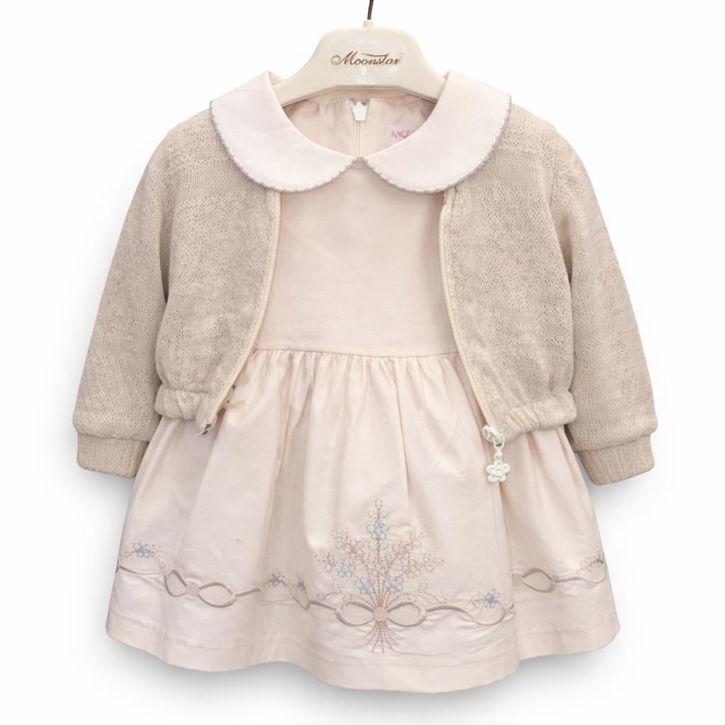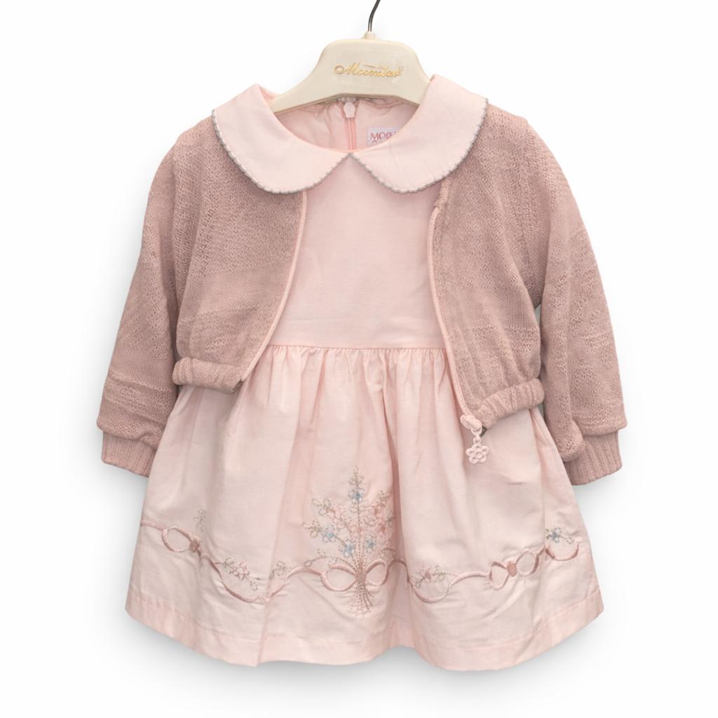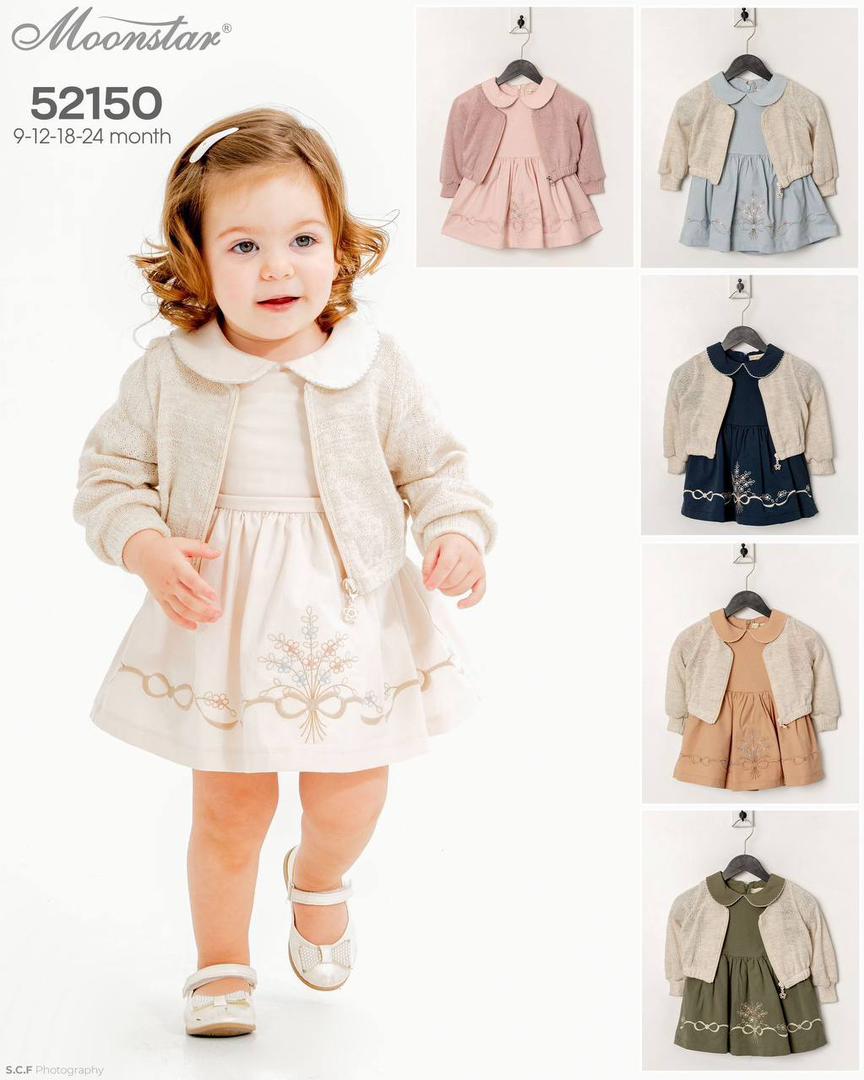 Ensemble raffiné pour bébé composé d’une robe délicatement brodée et d’un gilet assorti, parfait pour les occasions spéciales. Doux, confortable et disponible en plusieurs coloris, du 9 au 24 mois. Idéal pour un look chic et intemporel.