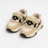 Baskets bébé en maille beige avec renforts en simili cuir et détails noirs. Fermeture par scratch pratique et semelle mouchetée pour une touche moderne et urbaine.