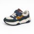 Baskets bébé avec empiècements en mesh et simili cuir, fermées par scratch. Coloris tendance avec touches de bleu, vert forêt et jaune moutarde, pour un style dynamique et confortable. -