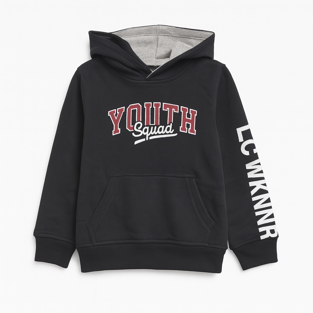 Sweat à capuche confortable avec imprimé Youth Squad, doté d’une poche kangourou et de manches décorées. Parfait pour un look tendance et décontracté au quotidien.