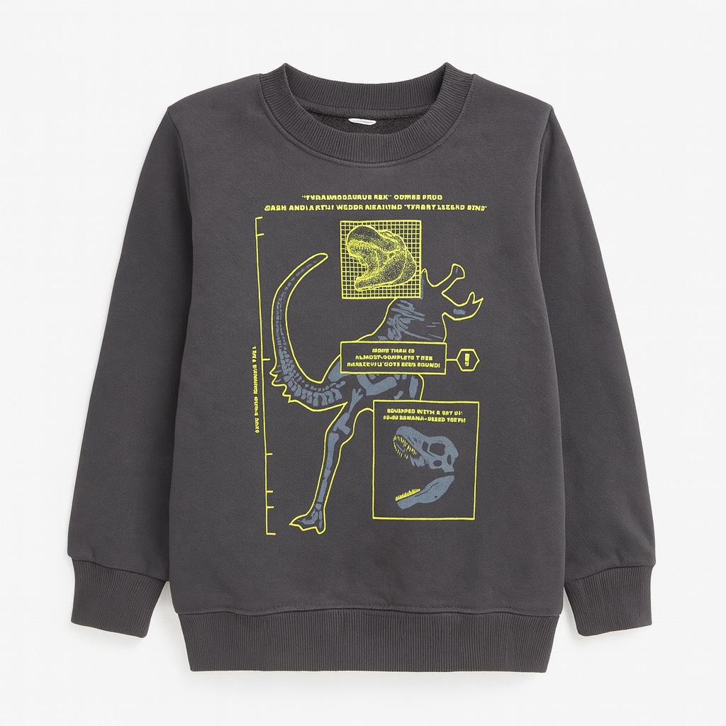 Sweat confortable avec imprimé dinosaure style radiographie sur le devant. Matière douce et coupe décontractée, parfait pour un look fun et tendance au quotidien.