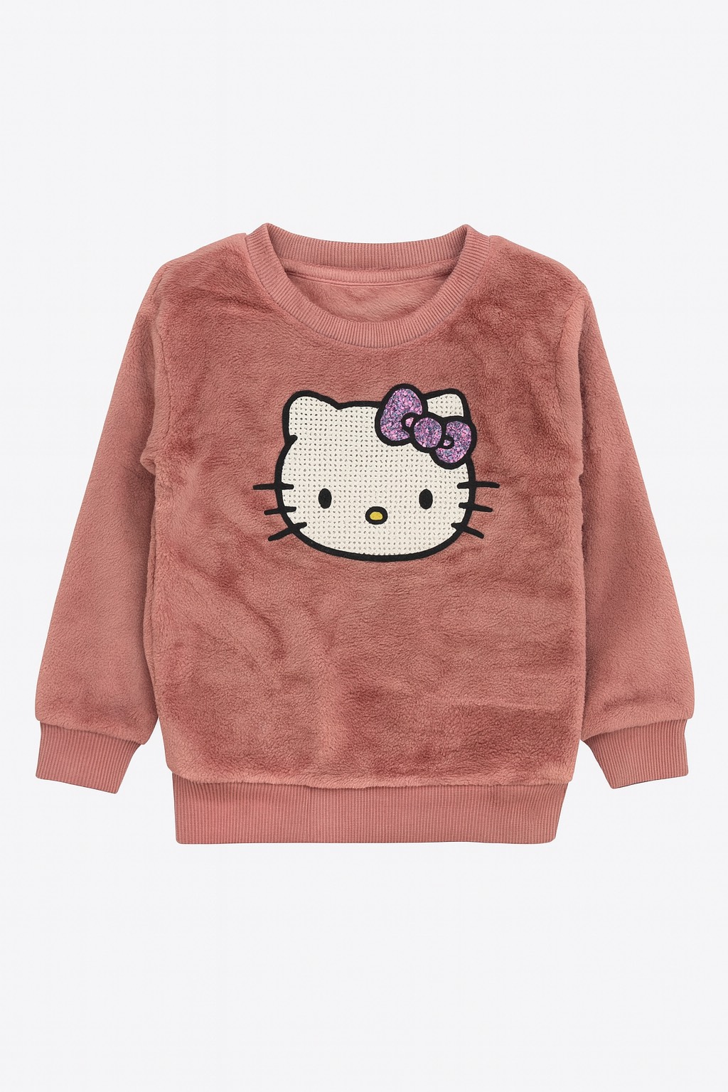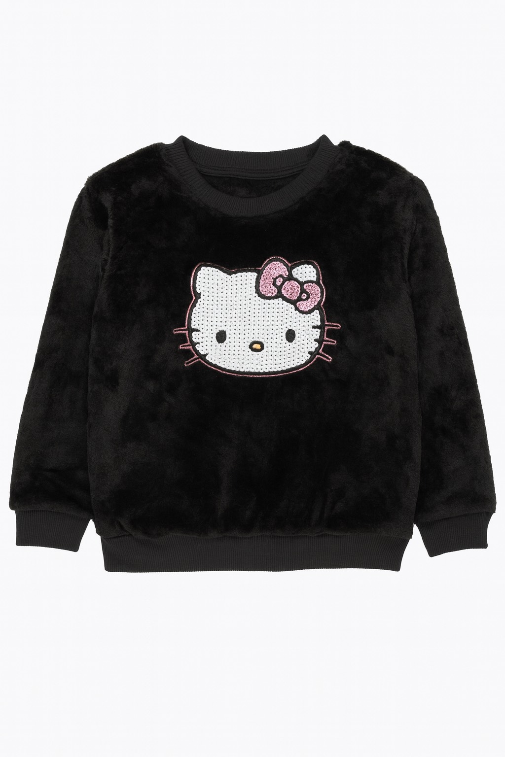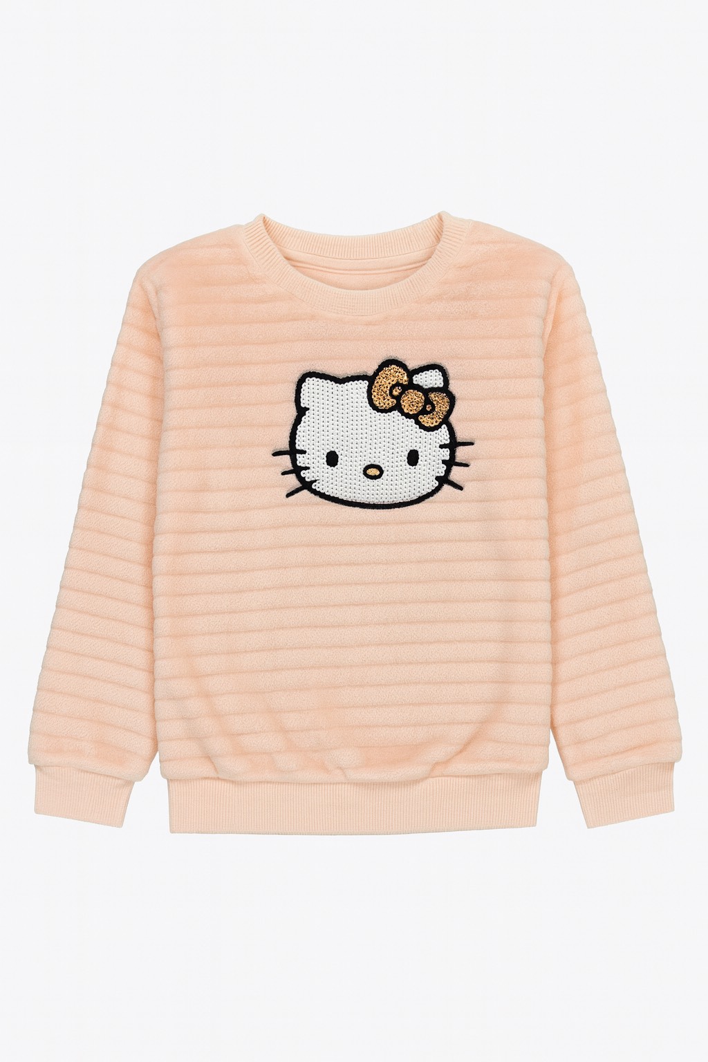 Sweat ultra-doux en tissu pilou, décoré du visage Hello Kitty avec nœud scintillant. Chaud, confortable et parfait pour l’hiver. Les petites fans vont l’adorer