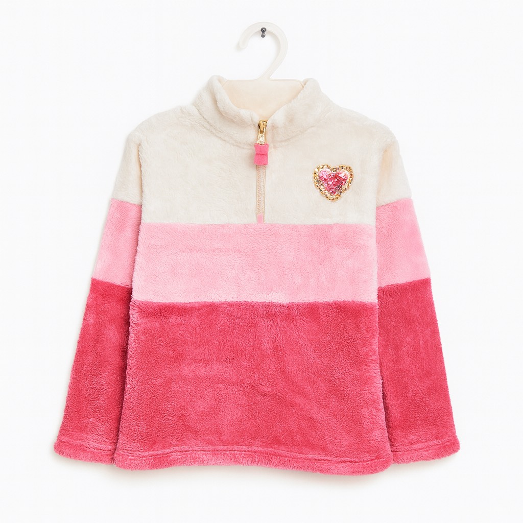 Sweat ultra-doux avec col zippé et motif cœur scintillant. Confort garanti pour un look chaud et mignon.