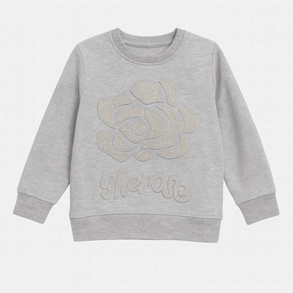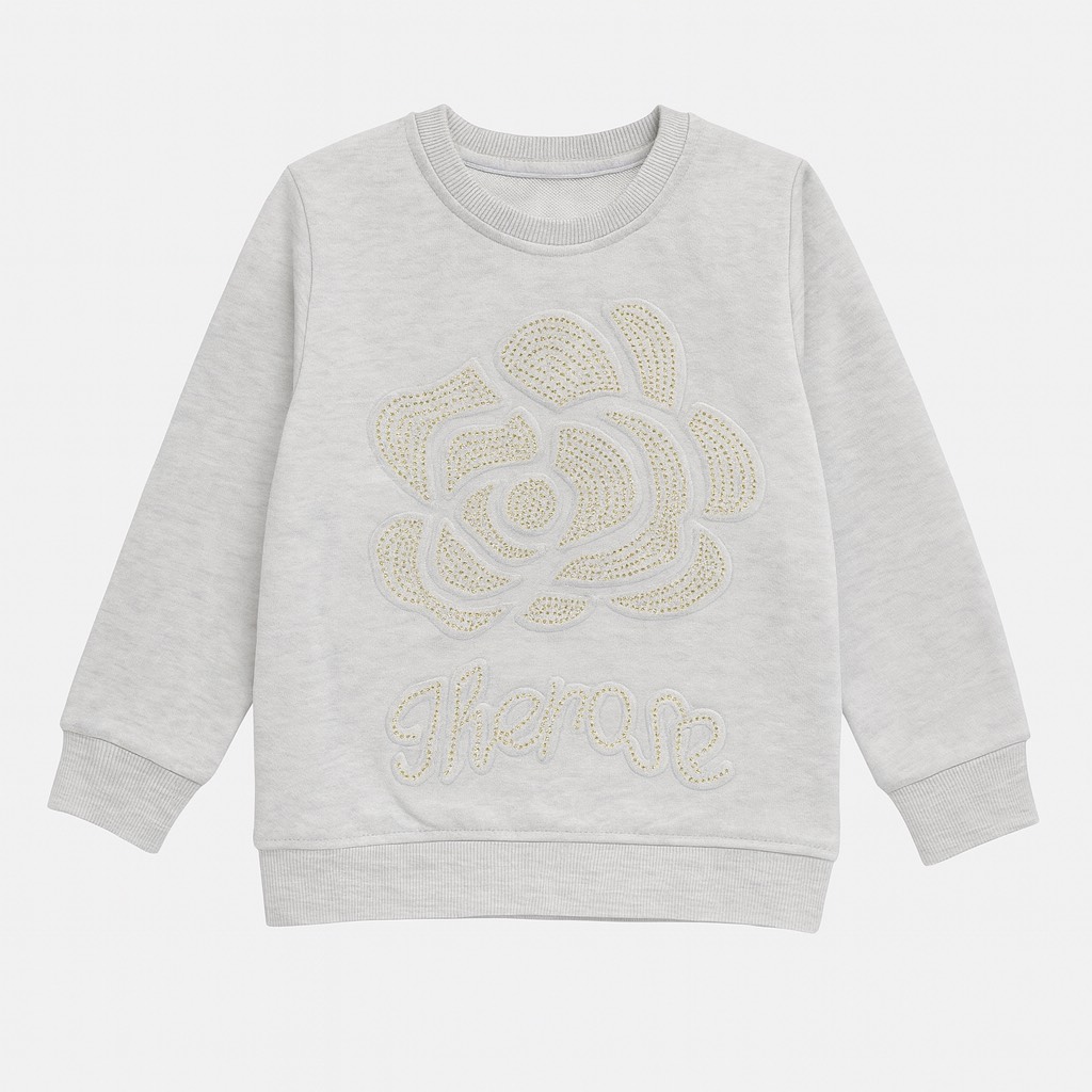 Ce sweatshirt gris clair séduit par son grand motif fleur brodé et orné de détails scintillants. Confortable et tendance, il apporte une touche d’élégance et de douceur aux tenues du quotidien.
