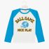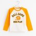 T-shirt confortable en coton avec manches contrastées et imprimé sportif “Ball Game Nice Play” sur le devant. Idéal pour un style décontracté au quotidien.